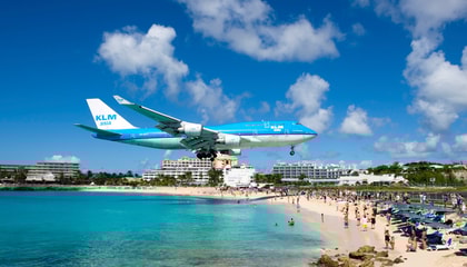 The runway is separated from the now famous Maho Beach by just a thin two-lane highway and a chicken fence, making it a superb spot to experience a close encounter with a jet. This pastime is not without danger: jet engines can produce winds of more than 160 kilometers an hour, easily blowing sand and people away. Fortunately no major injuries have been reported, and the thrill of jets taking off and landing continues to draw onlookers.
